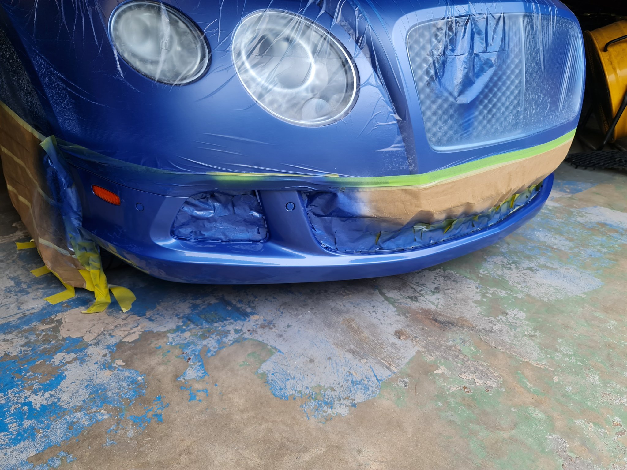 Left-side bumper crack on a Bentley GTC repaired with precision — exotic car quality at a fraction of dealer cost.