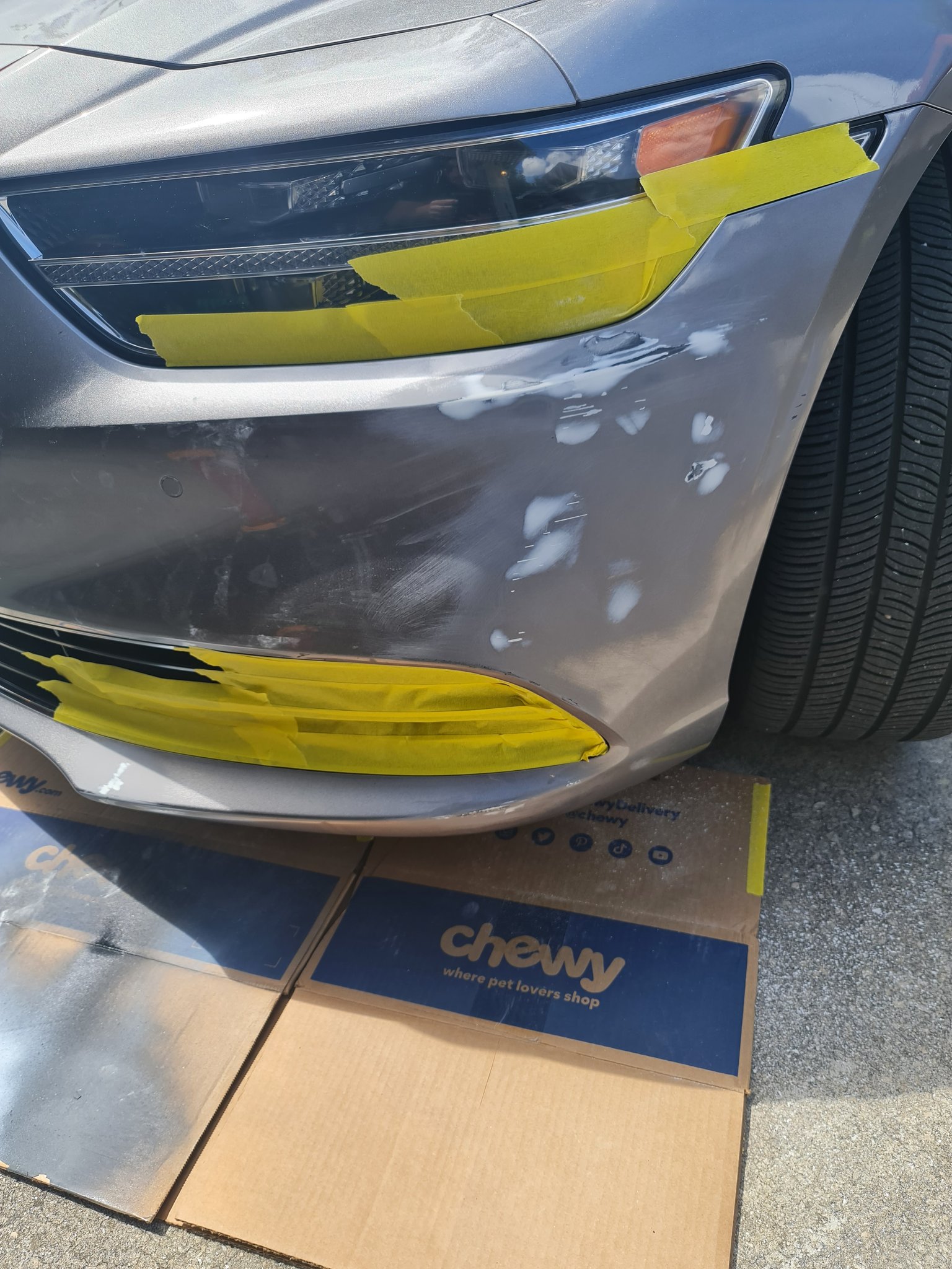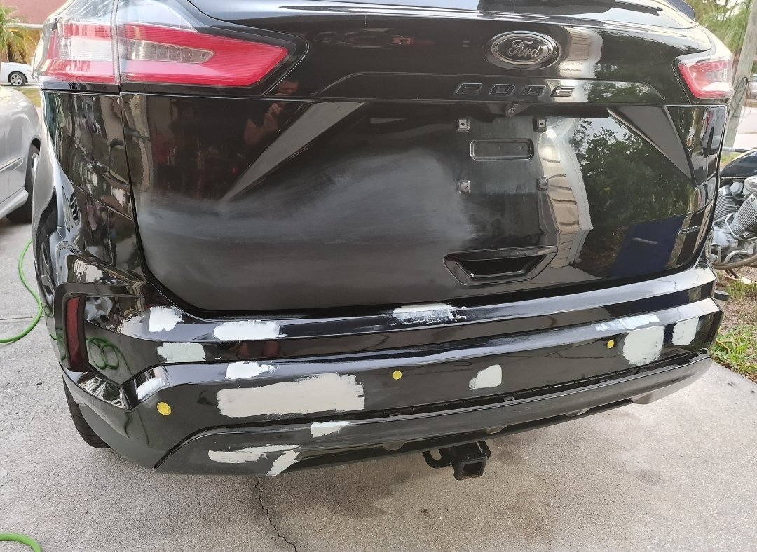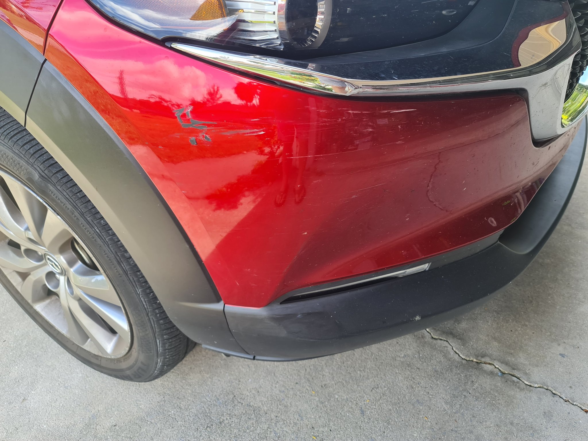 Deep bumper scratches filled, sanded, and color-matched for a seamless finish.