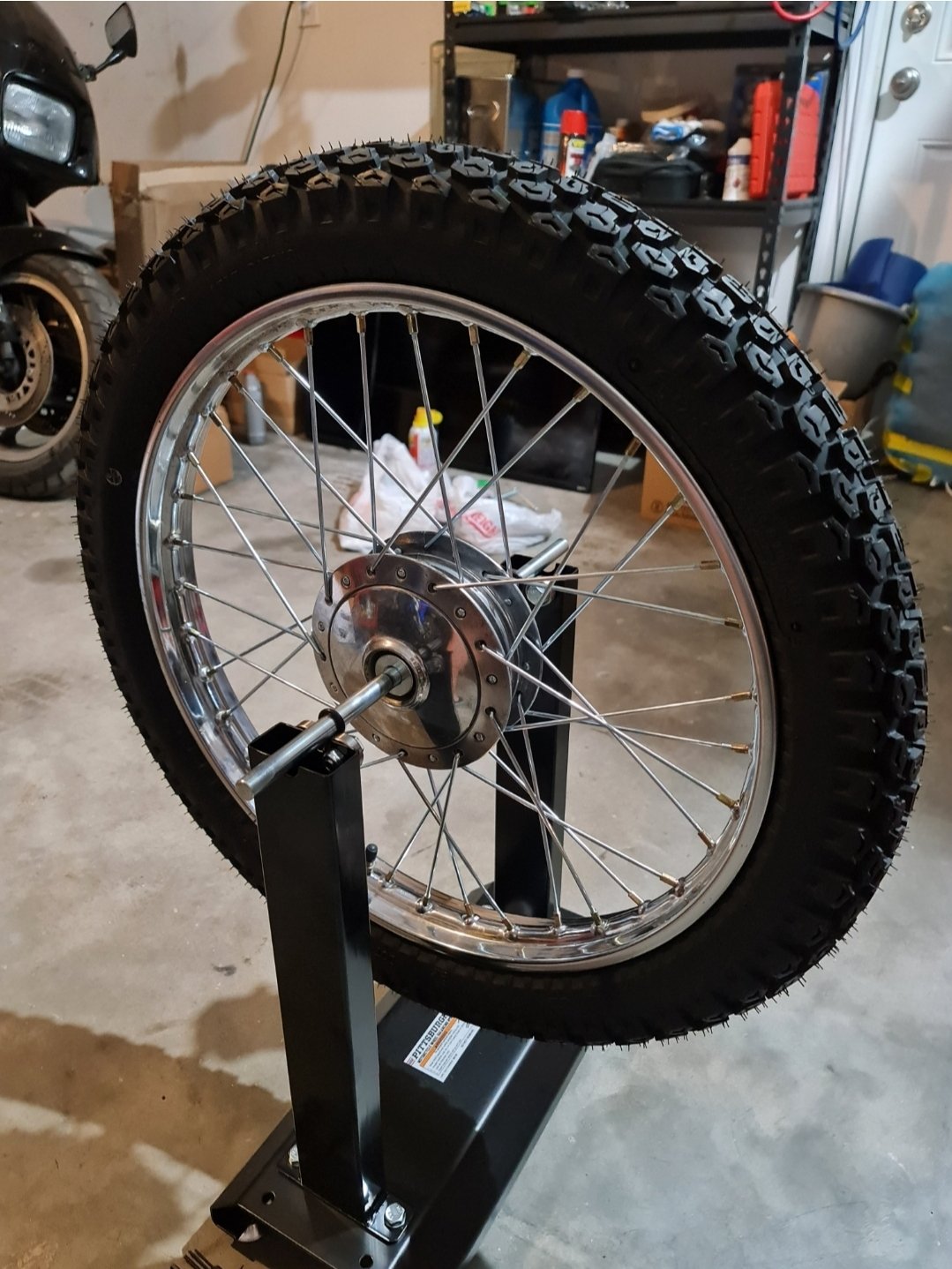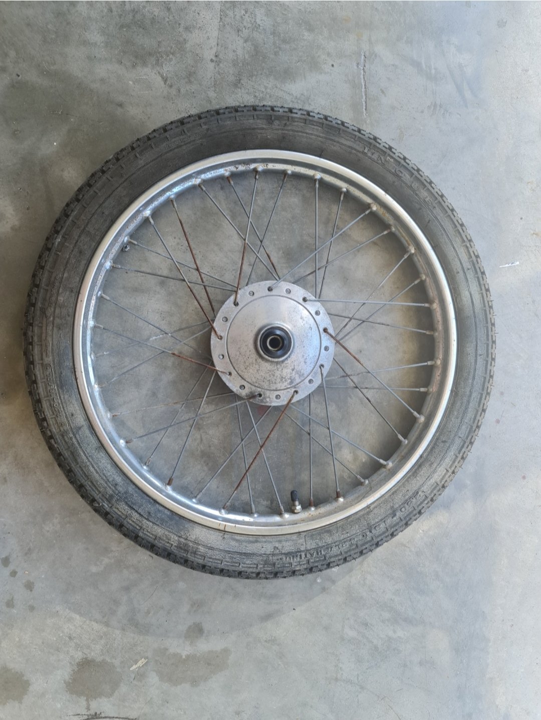 Vintage Honda wheel stripped, prepped, and refinished to period-correct finish.