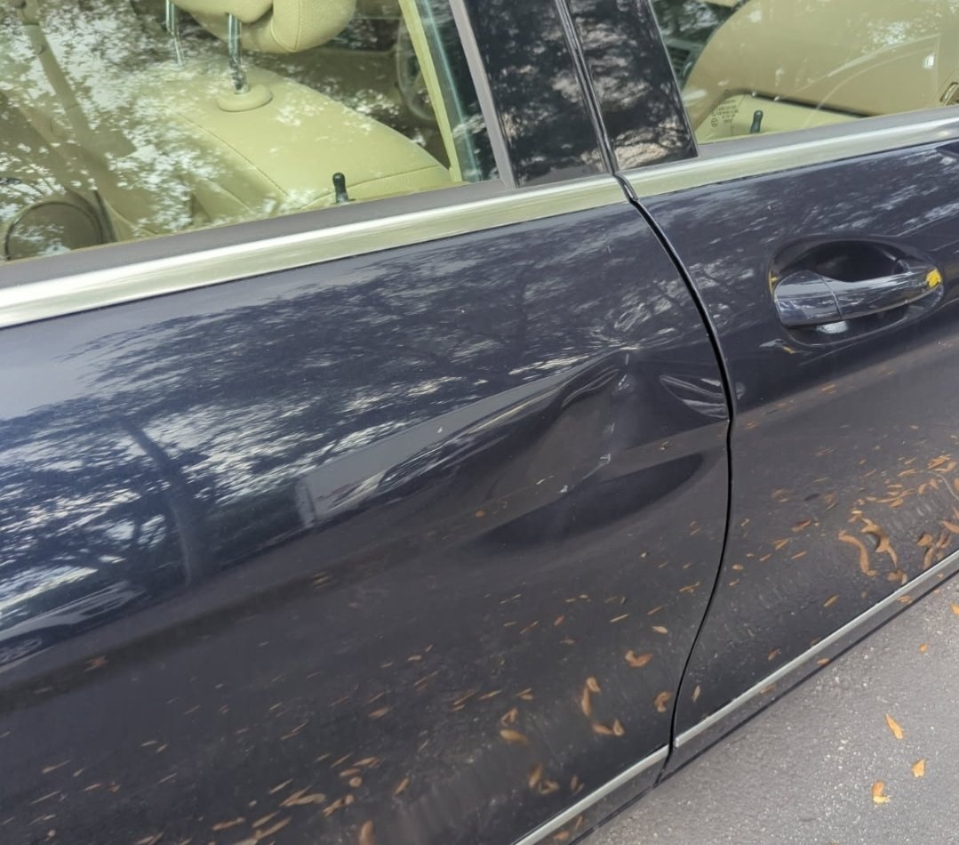 Quarter panel dent repaired without panel replacement — saving thousands over dealer repair.