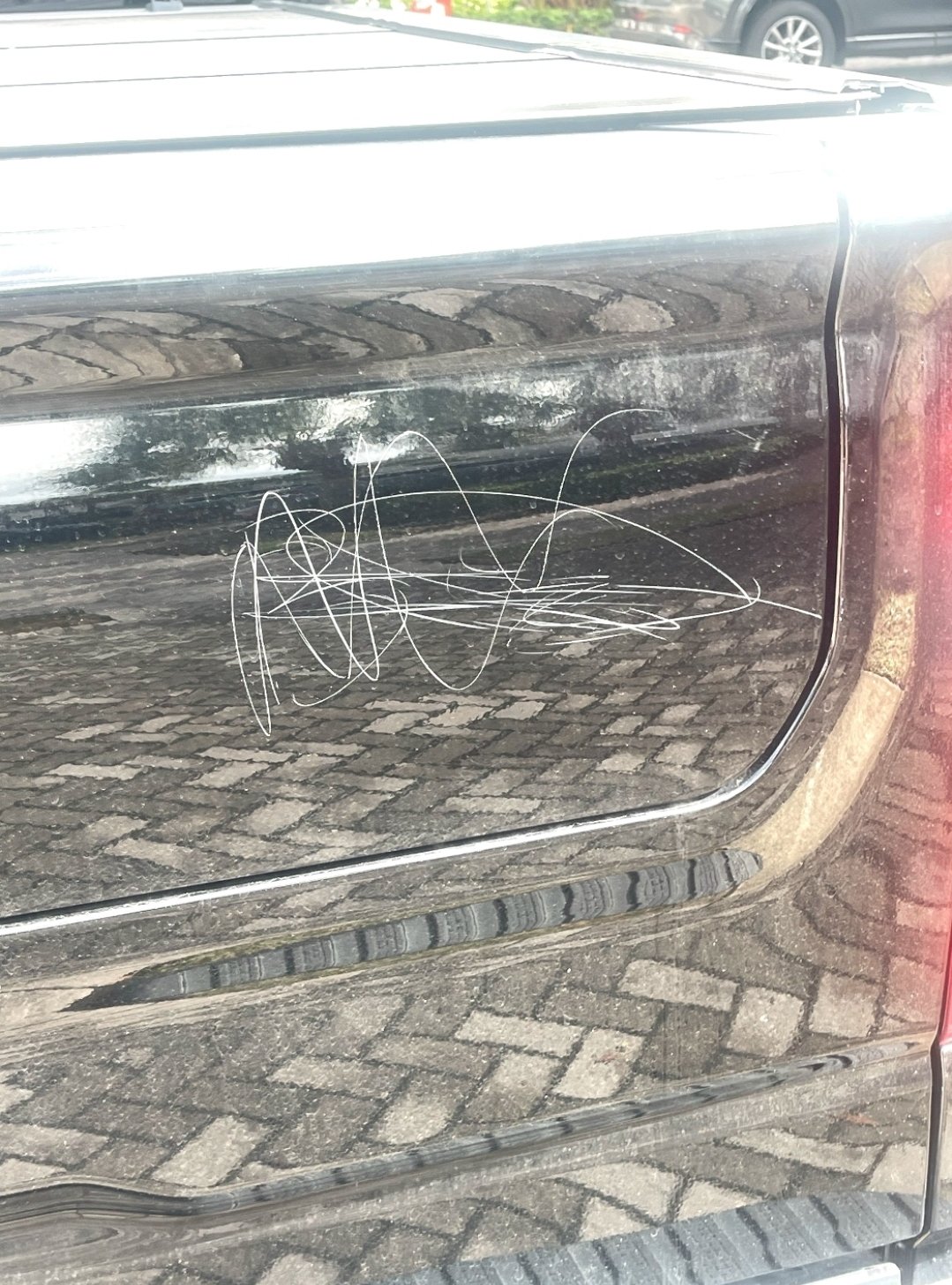 Deep scratches, key marks, and paint transfer — removed and refinished so you would never know they were there.